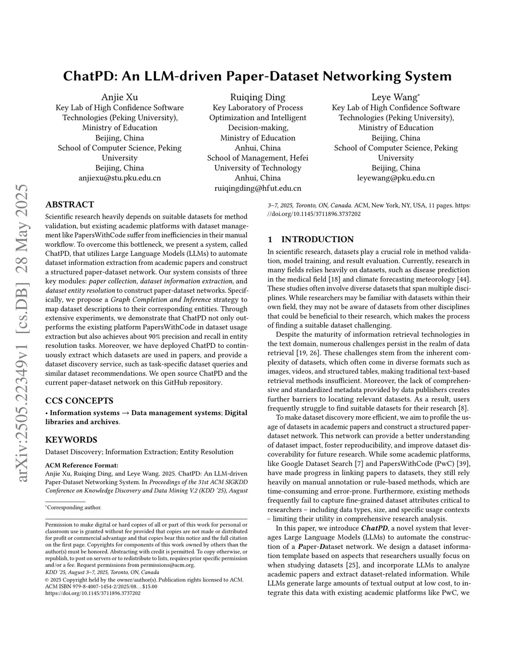 ChatPD: An LLM-driven Paper-Dataset Networking System