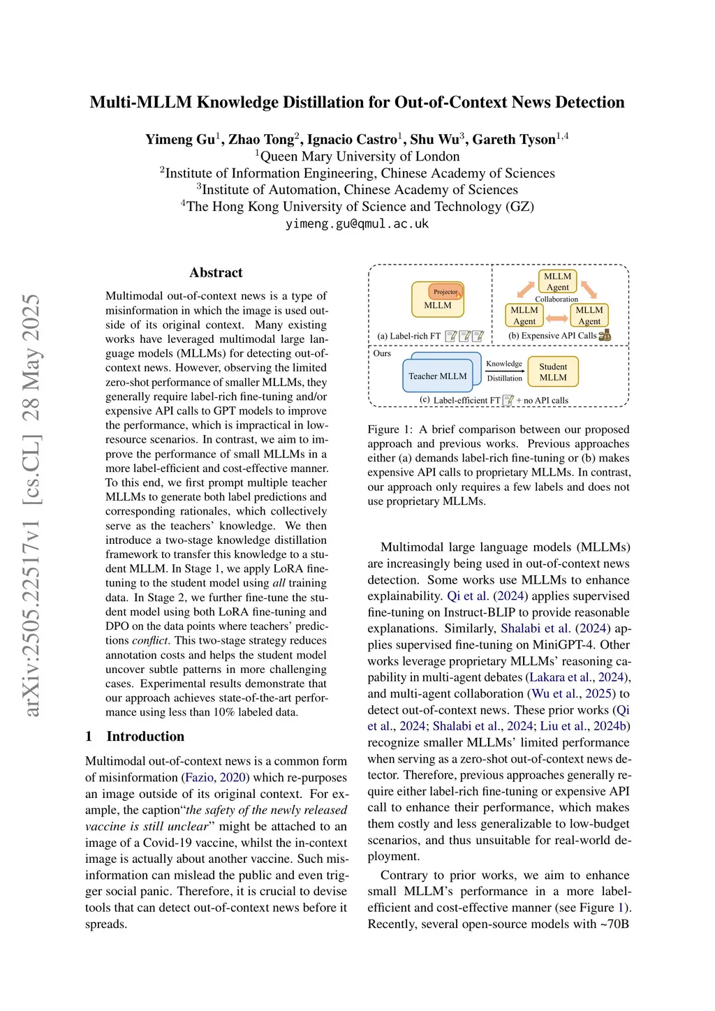 Multi-MLLM Knowledge Distillation for Out-of-Context News Detection