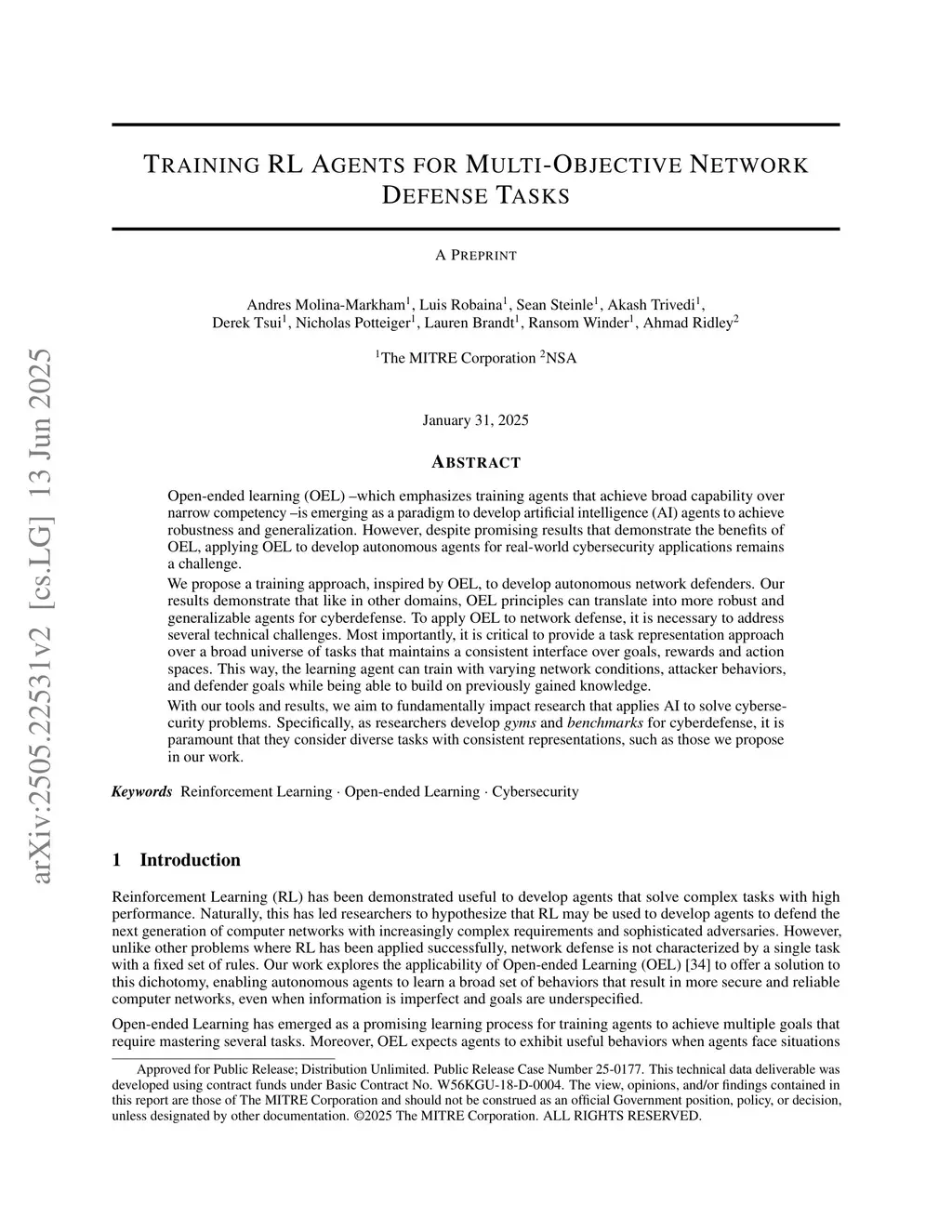 Training RL Agents for Multi-Objective Network Defense Tasks