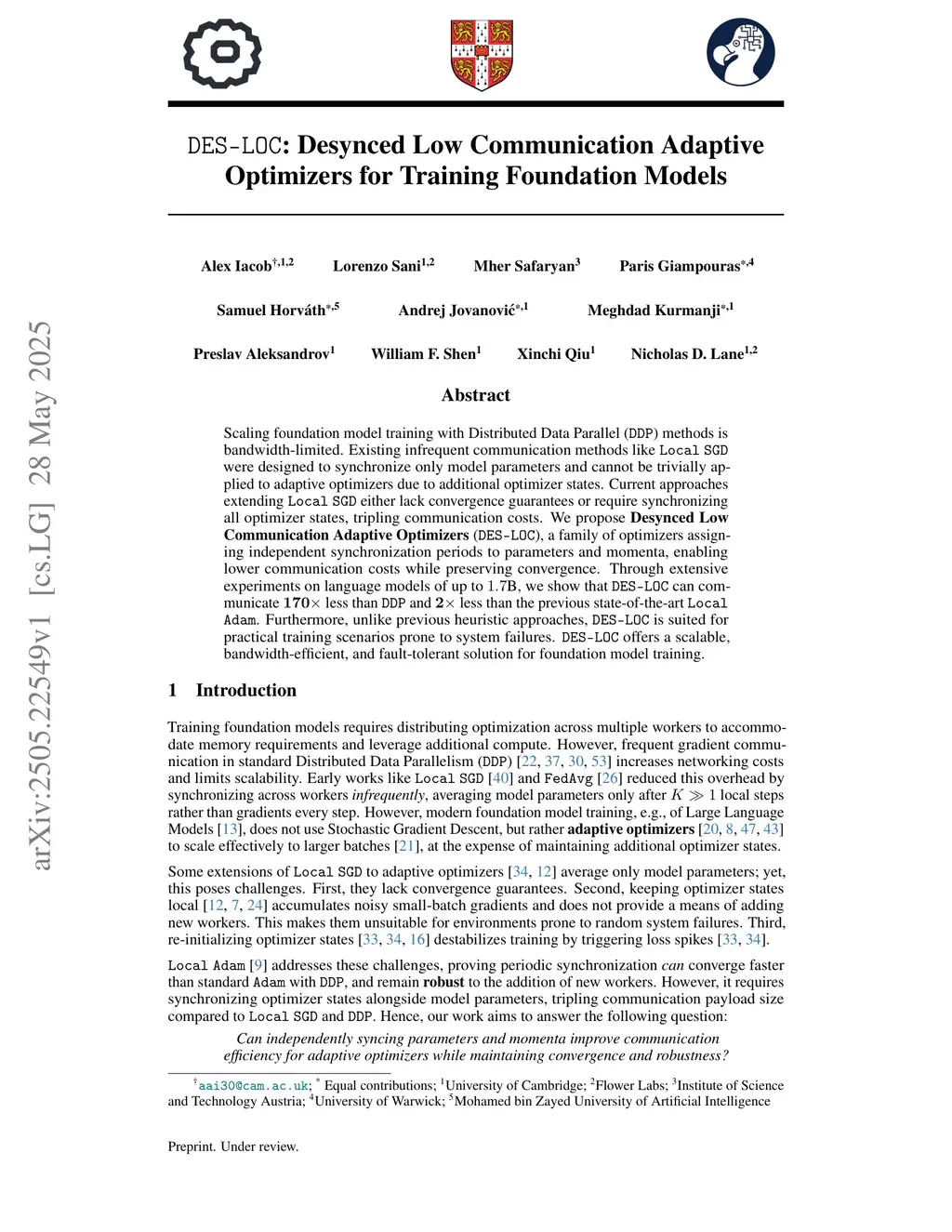 DES-LOC: Desynced Low Communication Adaptive Optimizers for Training Foundation Models