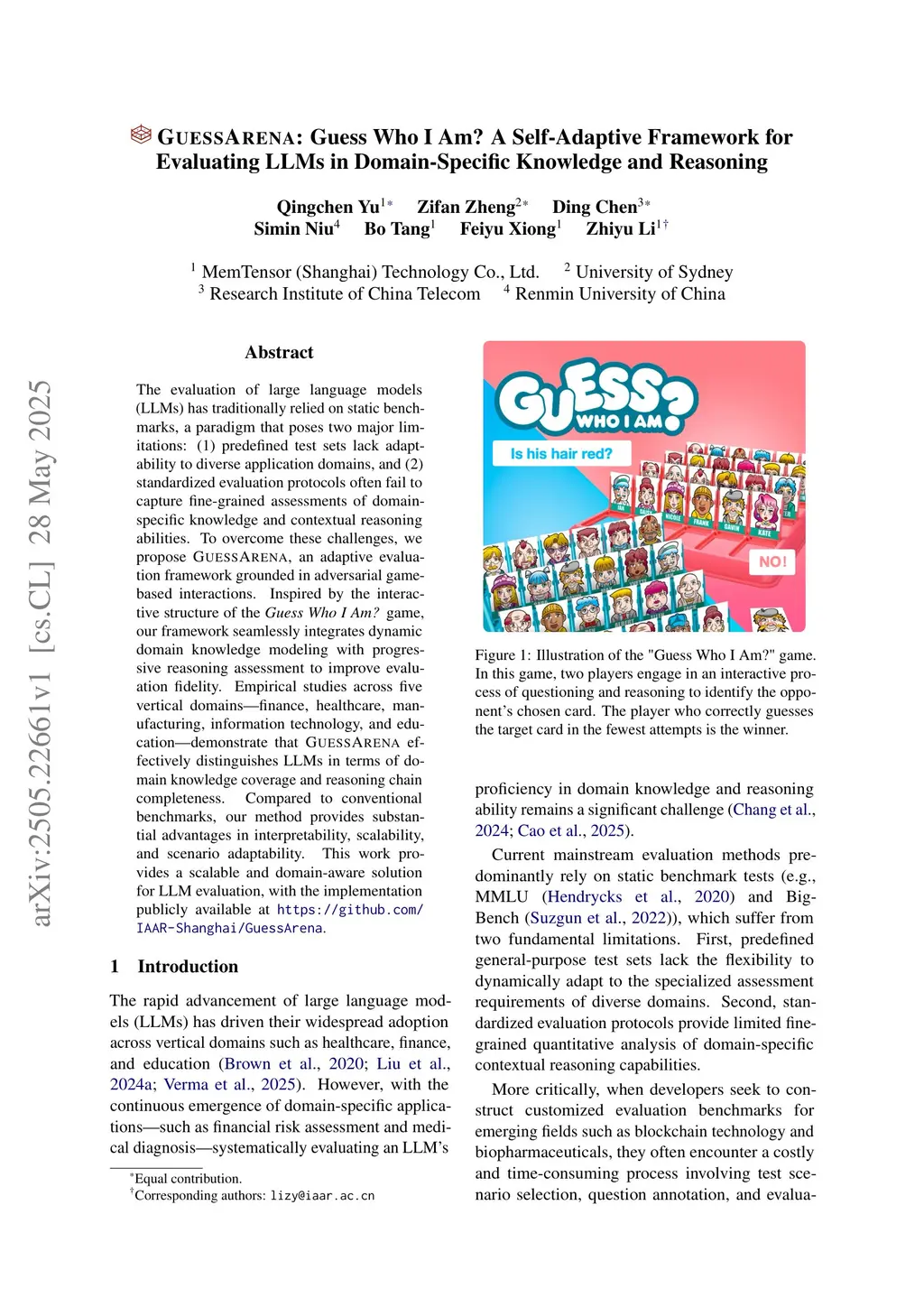 GuessArena: Guess Who I Am? A Self-Adaptive Framework for Evaluating LLMs in Domain-Specific Knowledge and Reasoning