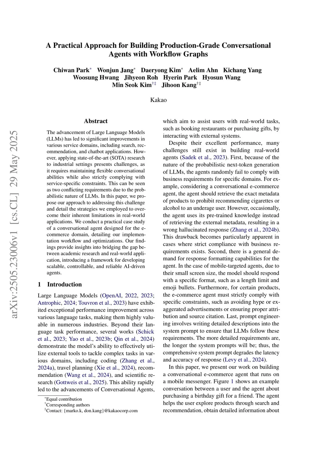 The advancement of Large Language Models (LLMs) has led to significant improvements in various service domains, including search, recommendation, and chatbot applications. However, applying state-of-the-art (SOTA) research to industrial settings presents challenges, as it requires maintaining flexible conversational abilities while also strictly complying with service-specific constraints. This can be seen as two conflicting requirements due to the probabilistic nature of LLMs. In this paper, we propose our approach to addressing this challenge and detail the strategies we employed to overcome their inherent limitations in real-world applications. We conduct a practical case study of a conversational agent designed for the e-commerce domain, detailing our implementation workflow and optimizations. Our findings provide insights into bridging the gap between academic research and real-world application, introducing a framework for developing scalable, controllable, and reliable AI-driven agents.