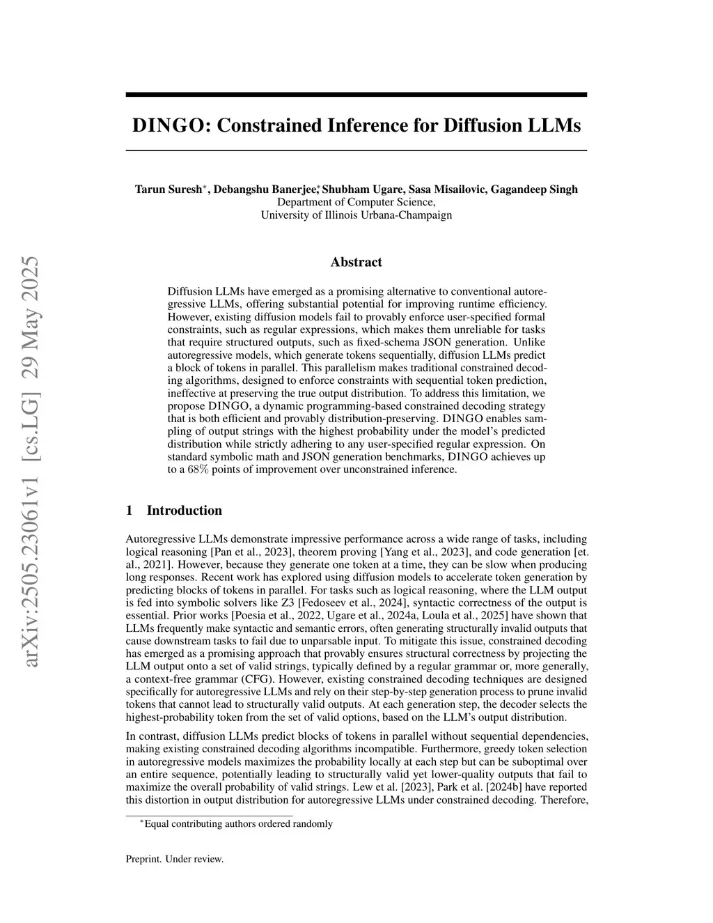 DINGO: Constrained Inference for Diffusion LLMs