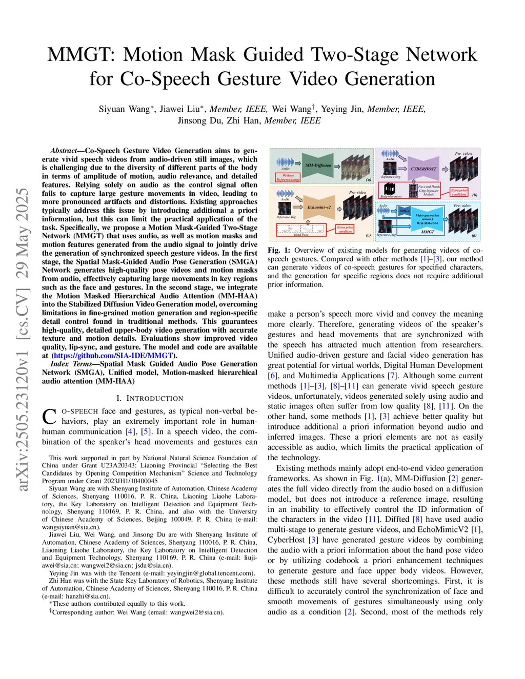 Co-Speech Gesture Video Generation aims to generate vivid speech videos from audio-driven still images, which is challenging due to the diversity of different parts of the body in terms of amplitude of motion, audio relevance, and detailed features. Relying solely on audio as the control signal often fails to capture large gesture movements in video, leading to more pronounced artifacts and distortions. Existing approaches typically address this issue by introducing additional a priori information, but this can limit the practical application of the task. Specifically, we propose a Motion Mask-Guided Two-Stage Network (MMGT) that uses audio, as well as motion masks and motion features generated from the audio signal to jointly drive the generation of synchronized speech gesture videos. In the first stage, the Spatial Mask-Guided Audio Pose Generation (SMGA) Network generates high-quality pose videos and motion masks from audio, effectively capturing large movements in key regions such as the face and gestures. In the second stage, we integrate the Motion Masked Hierarchical Audio Attention (MM-HAA) into the Stabilized Diffusion Video Generation model, overcoming limitations in fine-grained motion generation and region-specific detail control found in traditional methods. This guarantees high-quality, detailed upper-body video generation with accurate texture and motion details. Evaluations show improved video quality, lip-sync, and gesture. The model and code are available atthis https URL.