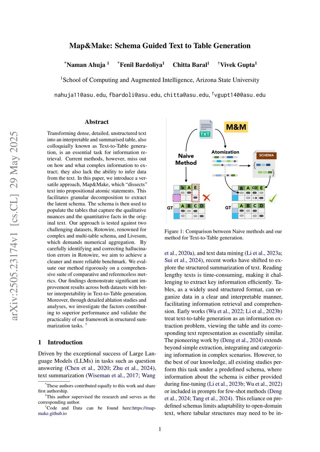 Map&Make: Schema Guided Text to Table Generation