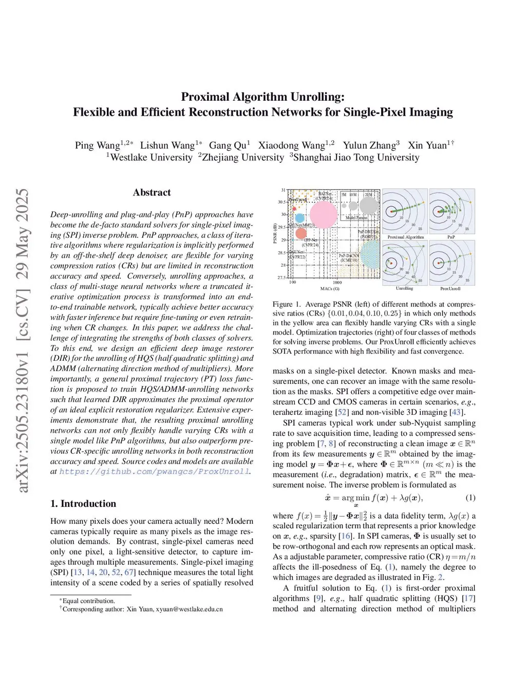 Deep-unrolling and plug-and-play (PnP) approaches have become the de-facto standard solvers for single-pixel imaging (SPI) inverse problem. PnP approaches, a class of iterative algorithms where regularization is implicitly performed by an off-the-shelf deep denoiser, are flexible for varying compression ratios (CRs) but are limited in reconstruction accuracy and speed. Conversely, unrolling approaches, a class of multi-stage neural networks where a truncated iterative optimization process is transformed into an end-to-end trainable network, typically achieve better accuracy with faster inference but require fine-tuning or even retraining when CR changes. In this paper, we address the challenge of integrating the strengths of both classes of solvers. To this end, we design an efficient deep image restorer (DIR) for the unrolling of HQS (half quadratic splitting) and ADMM (alternating direction method of multipliers). More importantly, a general proximal trajectory (PT) loss function is proposed to train HQS/ADMM-unrolling networks such that learned DIR approximates the proximal operator of an ideal explicit restoration regularizer. Extensive experiments demonstrate that, the resulting proximal unrolling networks can not only flexibly handle varying CRs with a single model like PnP algorithms, but also outperform previous CR-specific unrolling networks in both reconstruction accuracy and speed. Source codes and models are available atthis https URL.