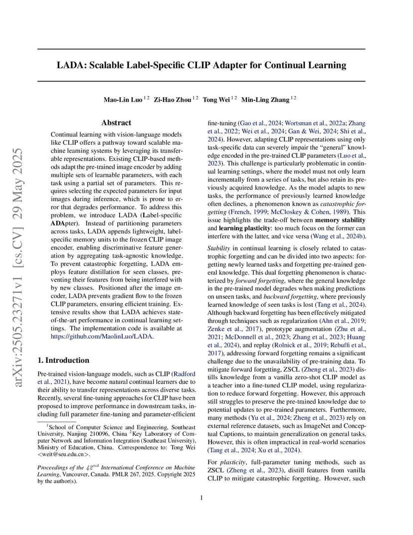 LADA: Scalable Label-Specific CLIP Adapter for Continual Learning