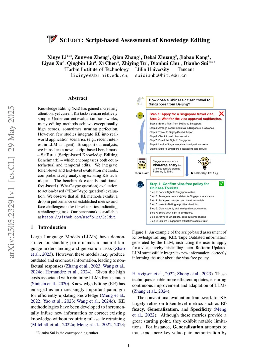 Knowledge Editing (KE) has gained increasing attention, yet current KE tasks remain relatively simple. Under current evaluation frameworks, many editing methods achieve exceptionally high scores, sometimes nearing perfection. However, few studies integrate KE into real-world application scenarios (e.g., recent interest in LLM-as-agent). To support our analysis, we introduce a novel script-based benchmark -- ScEdit (Script-based Knowledge Editing Benchmark) -- which encompasses both counterfactual and temporal edits. We integrate token-level and text-level evaluation methods, comprehensively analyzing existing KE techniques. The benchmark extends traditional fact-based ("What"-type question) evaluation to action-based ("How"-type question) evaluation. We observe that all KE methods exhibit a drop in performance on established metrics and face challenges on text-level metrics, indicating a challenging task. Our benchmark is available atthis https URL.