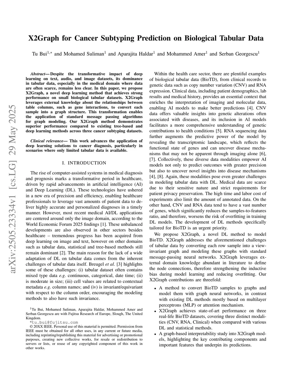 X2Graph for Cancer Subtyping Prediction on Biological Tabular Data