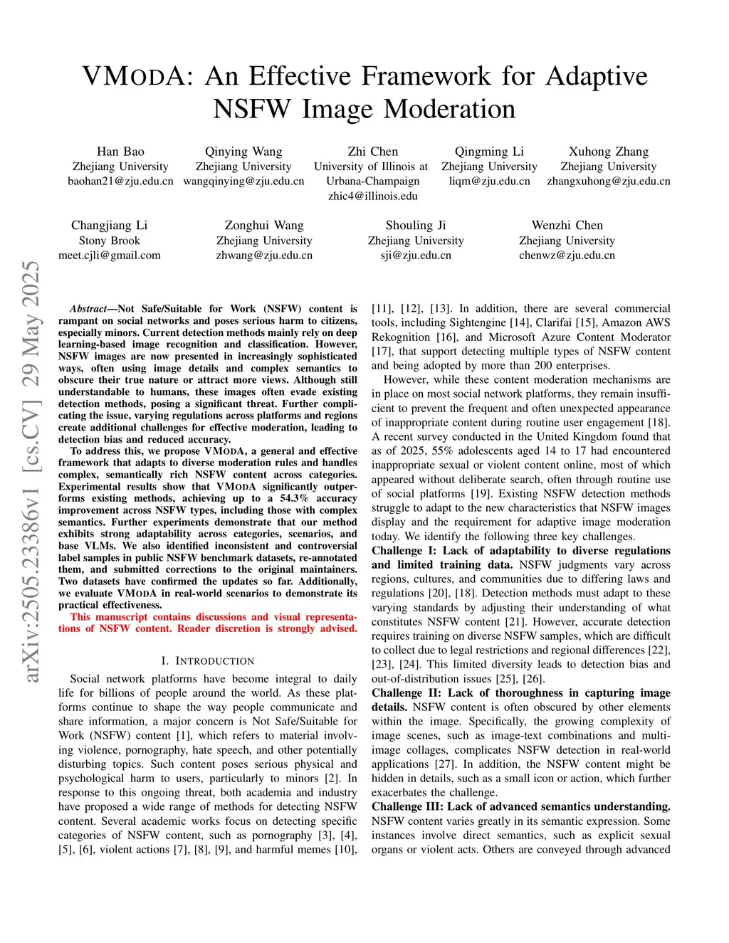VModA: An Effective Framework for Adaptive NSFW Image Moderation