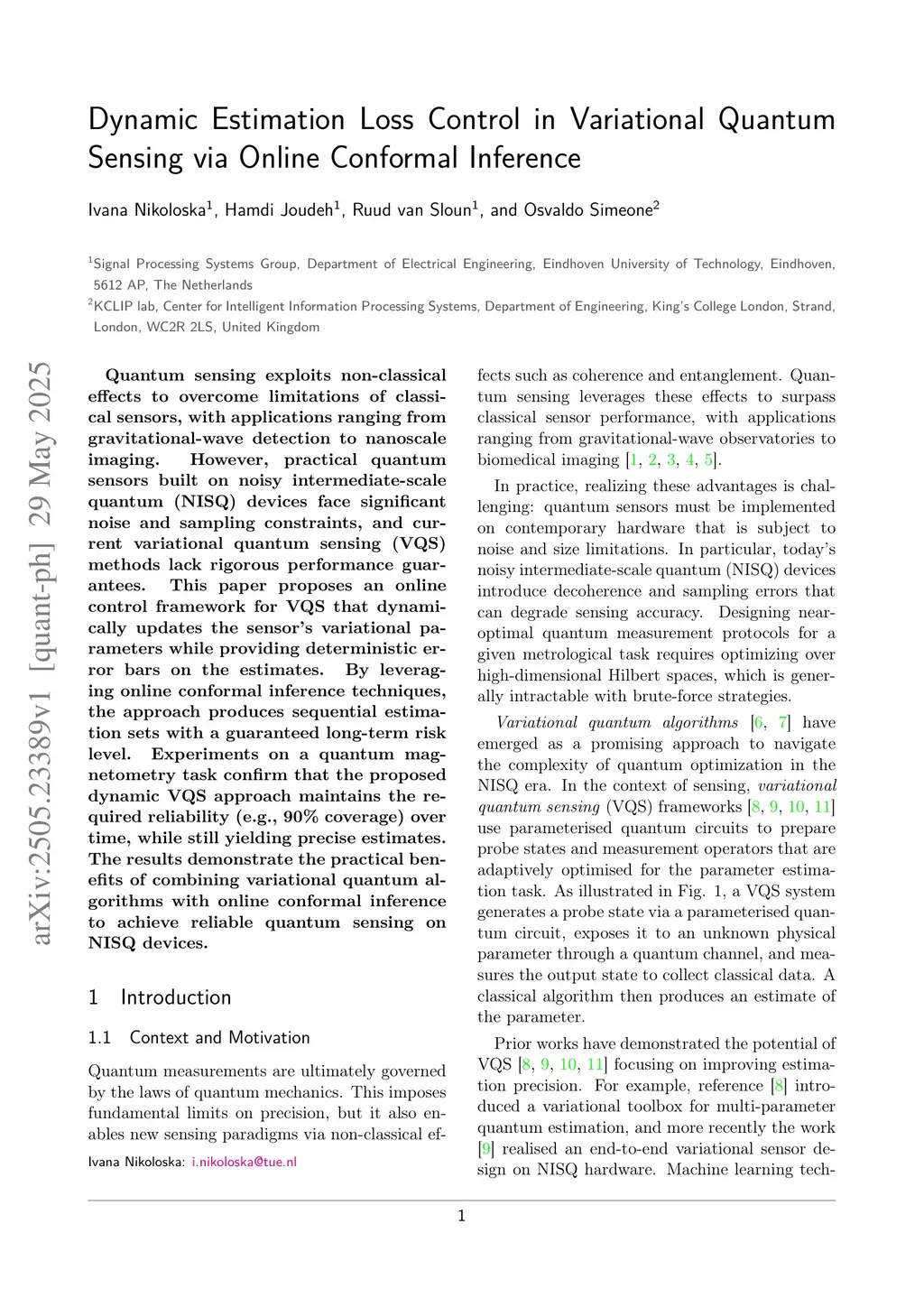 Quantum sensing exploits non-classical effects to overcome limitations of classical sensors, with applications ranging from gravitational-wave detection to nanoscale imaging. However, practical quantum sensors built on noisy intermediate-scale quantum (NISQ) devices face significant noise and sampling constraints, and current variational quantum sensing (VQS) methods lack rigorous performance guarantees. This paper proposes an online control framework for VQS that dynamically updates the variational parameters while providing deterministic error bars on the estimates. By leveraging online conformal inference techniques, the approach produces sequential estimation sets with a guaranteed long-term risk level. Experiments on a quantum magnetometry task confirm that the proposed dynamic VQS approach maintains the required reliability over time, while still yielding precise estimates. The results demonstrate the practical benefits of combining variational quantum algorithms with online conformal inference to achieve reliable quantum sensing on NISQ devices.
