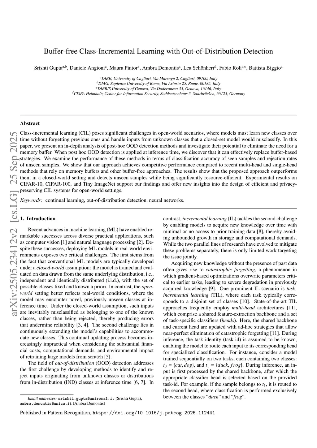 Buffer-free Class-Incremental Learning with Out-of-Distribution Detection