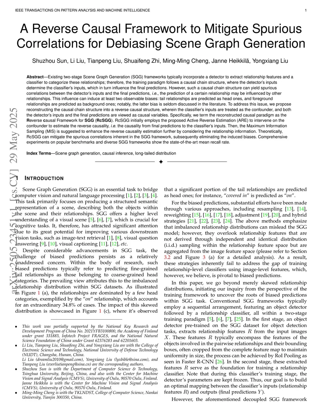 Existing two-stage Scene Graph Generation (SGG) frameworks typically incorporate a detector to extract relationship features and a classifier to categorize these relationships; therefore, the training paradigm follows a causal chain structure, where the detector's inputs determine the classifier's inputs, which in turn influence the final predictions. However, such a causal chain structure can yield spurious correlations between the detector's inputs and the final predictions, i.e., the prediction of a certain relationship may be influenced by other relationships. This influence can induce at least two observable biases: tail relationships are predicted as head ones, and foreground relationships are predicted as background ones; notably, the latter bias is seldom discussed in the literature. To address this issue, we propose reconstructing the causal chain structure into a reverse causal structure, wherein the classifier's inputs are treated as the confounder, and both the detector's inputs and the final predictions are viewed as causal variables. Specifically, we term the reconstructed causal paradigm as the Reverse causal Framework for SGG (RcSGG). RcSGG initially employs the proposed Active Reverse Estimation (ARE) to intervene on the confounder to estimate the reverse causality, \ie the causality from final predictions to the classifier's inputs. Then, the Maximum Information Sampling (MIS) is suggested to enhance the reverse causality estimation further by considering the relationship information. Theoretically, RcSGG can mitigate the spurious correlations inherent in the SGG framework, subsequently eliminating the induced biases. Comprehensive experiments on popular benchmarks and diverse SGG frameworks show the state-of-the-art mean recall rate.