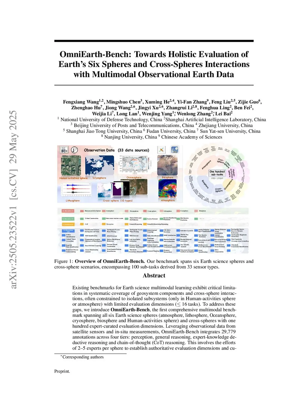 OmniEarth-Bench: Towards Holistic Evaluation of Earth's Six Spheres and Cross-Spheres Interactions with Multimodal Observational Earth Data