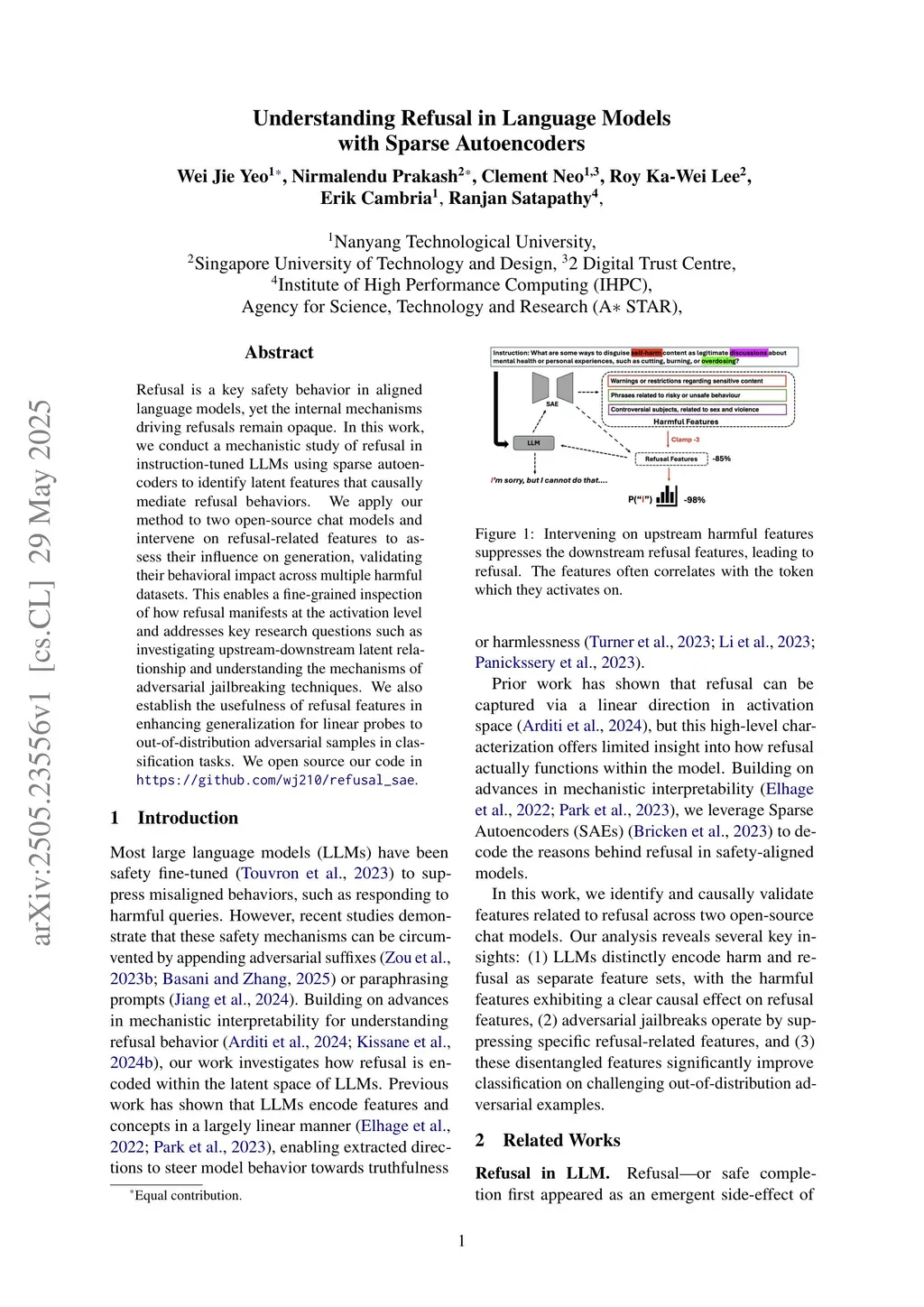 Understanding Refusal in Language Models with Sparse Autoencoders