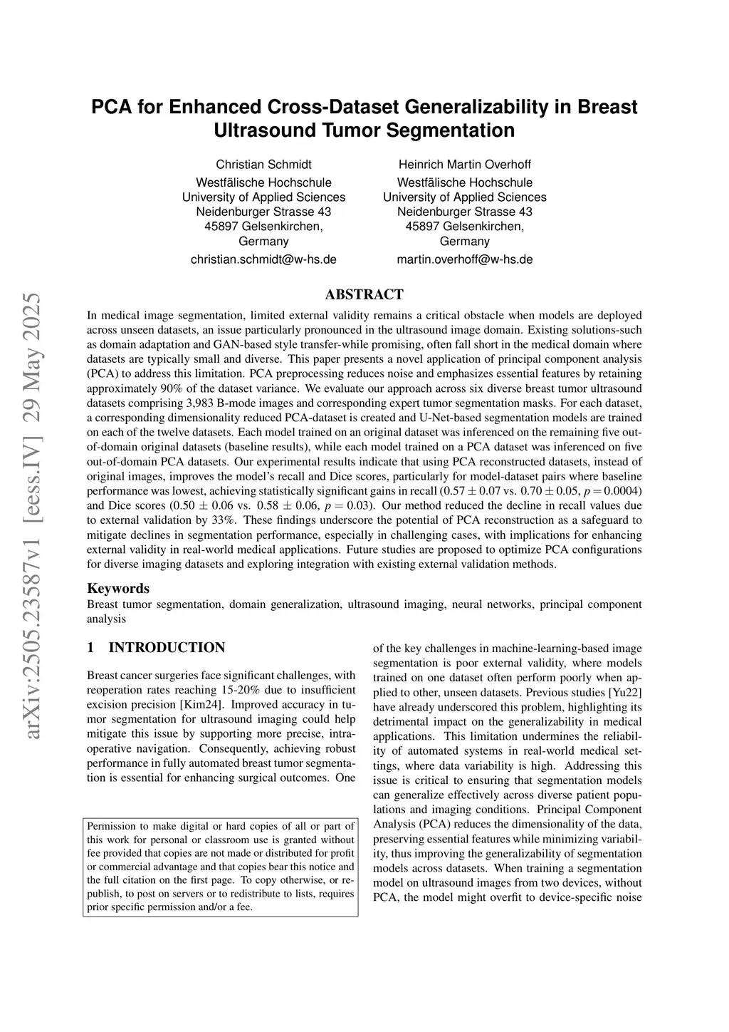 PCA for Enhanced Cross-Dataset Generalizability in Breast Ultrasound Tumor Segmentation