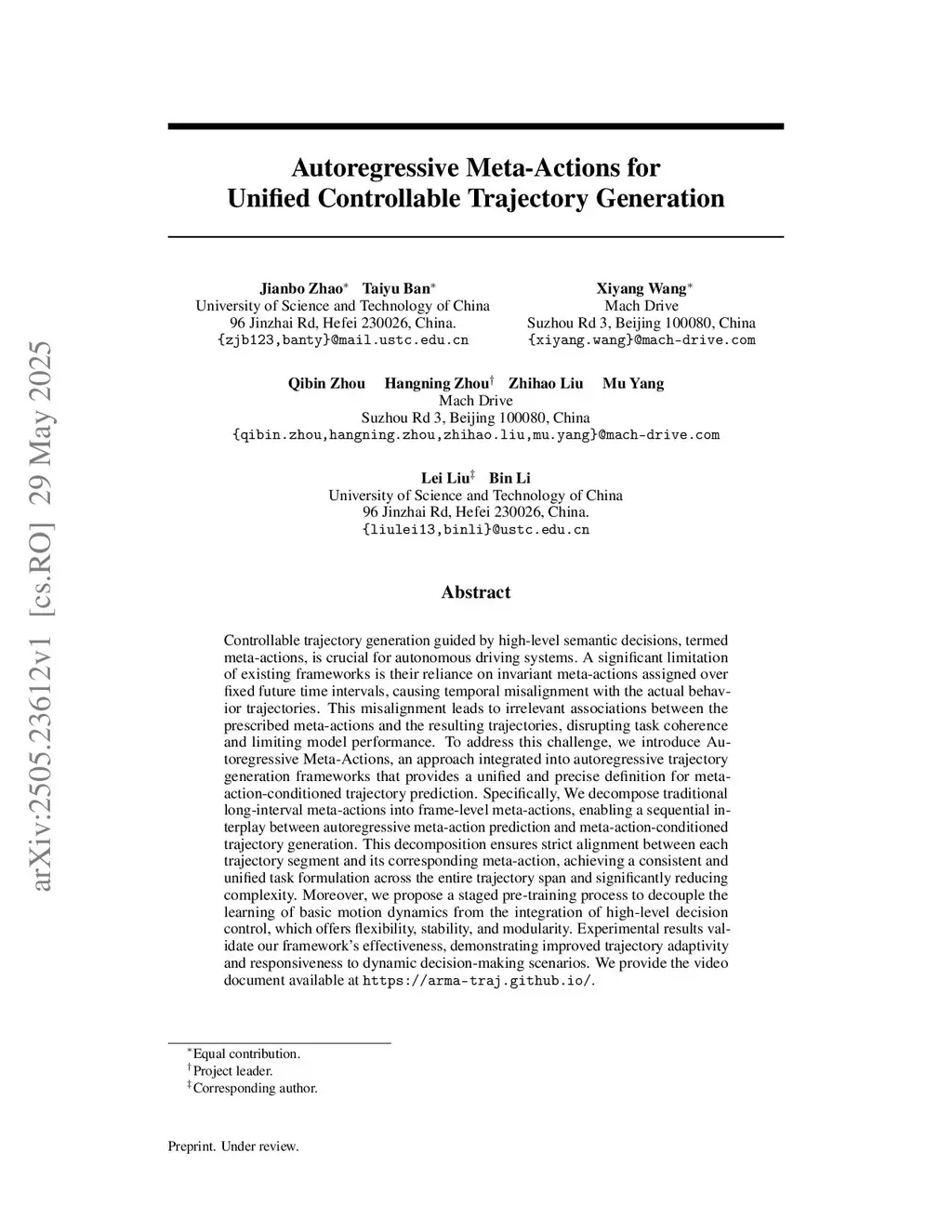 Autoregressive Meta-Actions for Unified Controllable Trajectory Generation