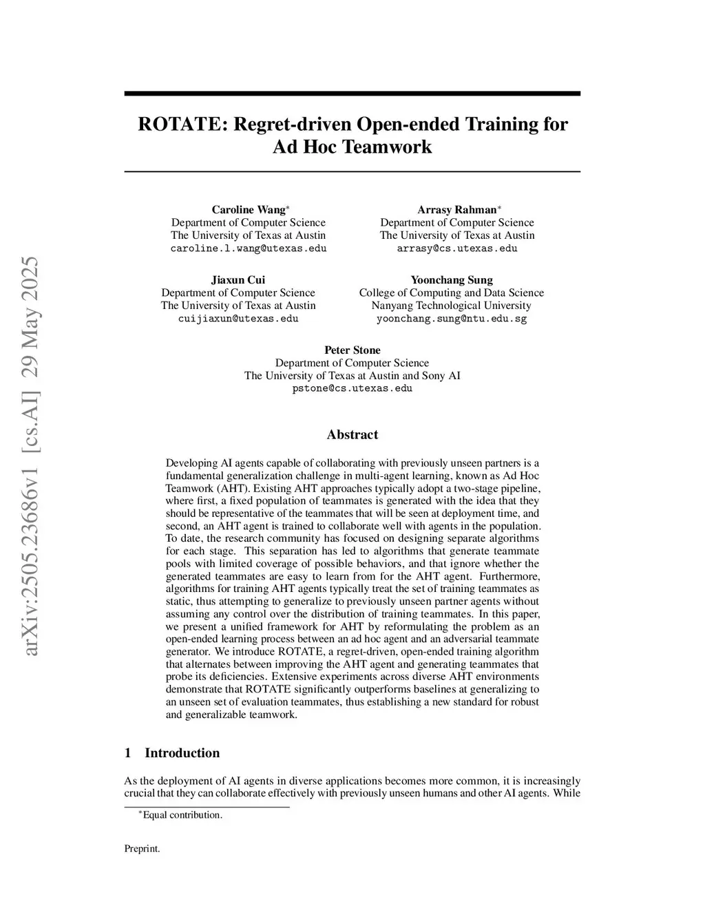 ROTATE: Regret-driven Open-ended Training for Ad Hoc Teamwork