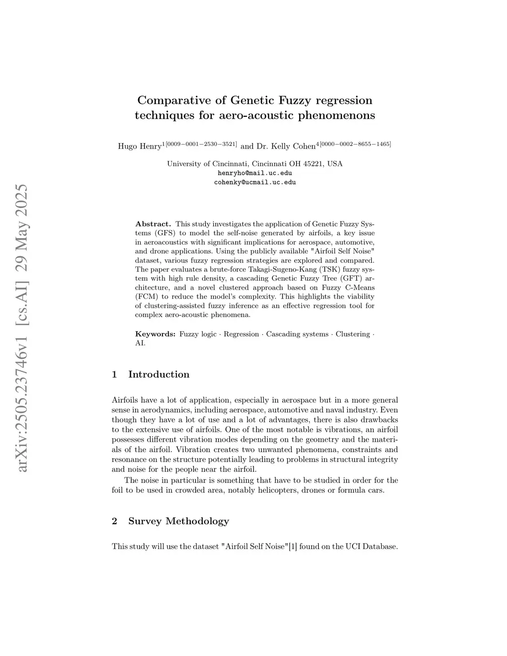 This study investigates the application of Genetic Fuzzy Systems (GFS) to model the self-noise generated by airfoils, a key issue in aeroaccoustics with significant implications for aerospace, automotive and drone applications. Using the publicly available Airfoil Self Noise dataset, various Fuzzy regression strategies are explored and compared. The paper evaluates a brute force Takagi Sugeno Kang (TSK) fuzzy system with high rule density, a cascading Geneti Fuzzy Tree (GFT) architecture and a novel clustered approach based on Fuzzy C-means (FCM) to reduce the model's complexity. This highlights the viability of clustering assisted fuzzy inference as an effective regression tool for complex aero accoustic phenomena. Keywords : Fuzzy logic, Regression, Cascading systems, Clustering and AI.