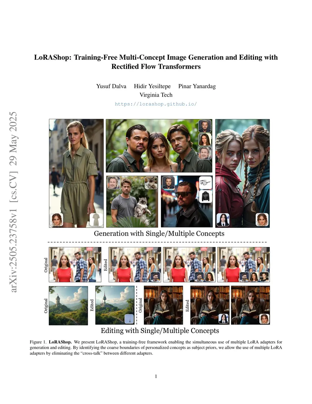 LoRAShop: Training-Free Multi-Concept Image Generation and Editing with Rectified Flow Transformers