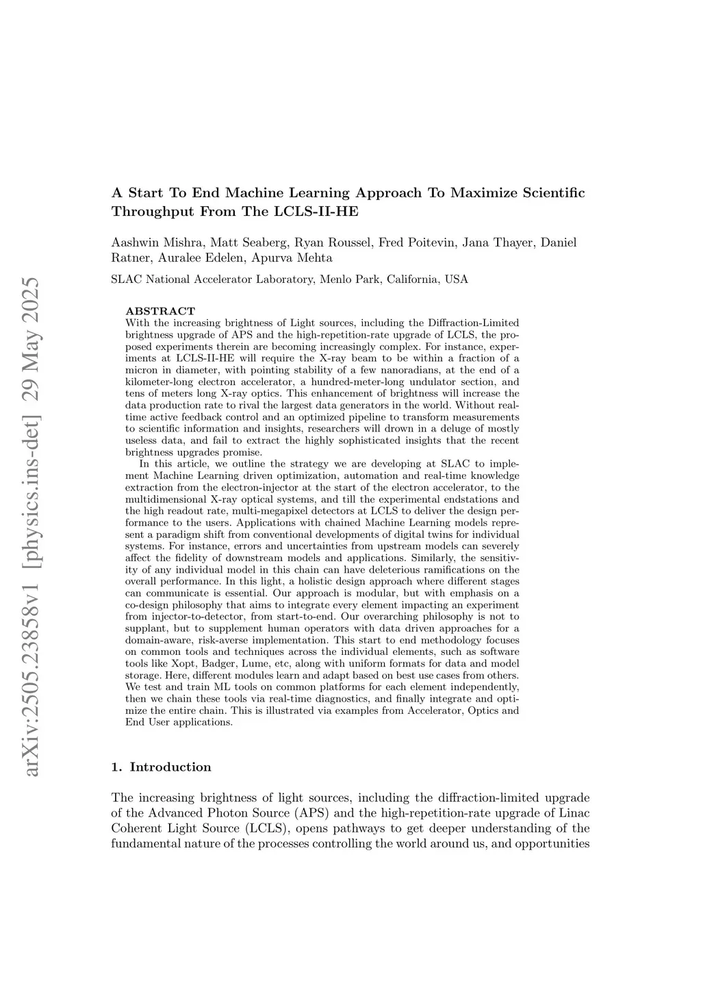With the increasing brightness of Light sources, including the Diffraction-Limited brightness upgrade of APS and the high-repetition-rate upgrade of LCLS, the proposed experiments therein are becoming increasingly complex. For instance, experiments at LCLS-II-HE will require the X-ray beam to be within a fraction of a micron in diameter, with pointing stability of a few nanoradians, at the end of a kilometer-long electron accelerator, a hundred-meter-long undulator section, and tens of meters long X-ray optics. This enhancement of brightness will increase the data production rate to rival the largest data generators in the world. Without real-time active feedback control and an optimized pipeline to transform measurements to scientific information and insights, researchers will drown in a deluge of mostly useless data, and fail to extract the highly sophisticated insights that the recent brightness upgrades promise.In this article, we outline the strategy we are developing at SLAC to implement Machine Learning driven optimization, automation and real-time knowledge extraction from the electron-injector at the start of the electron accelerator, to the multidimensional X-ray optical systems, and till the experimental endstations and the high readout rate, multi-megapixel detectors at LCLS to deliver the design performance to the users. This is illustrated via examples from Accelerator, Optics and End User applications.