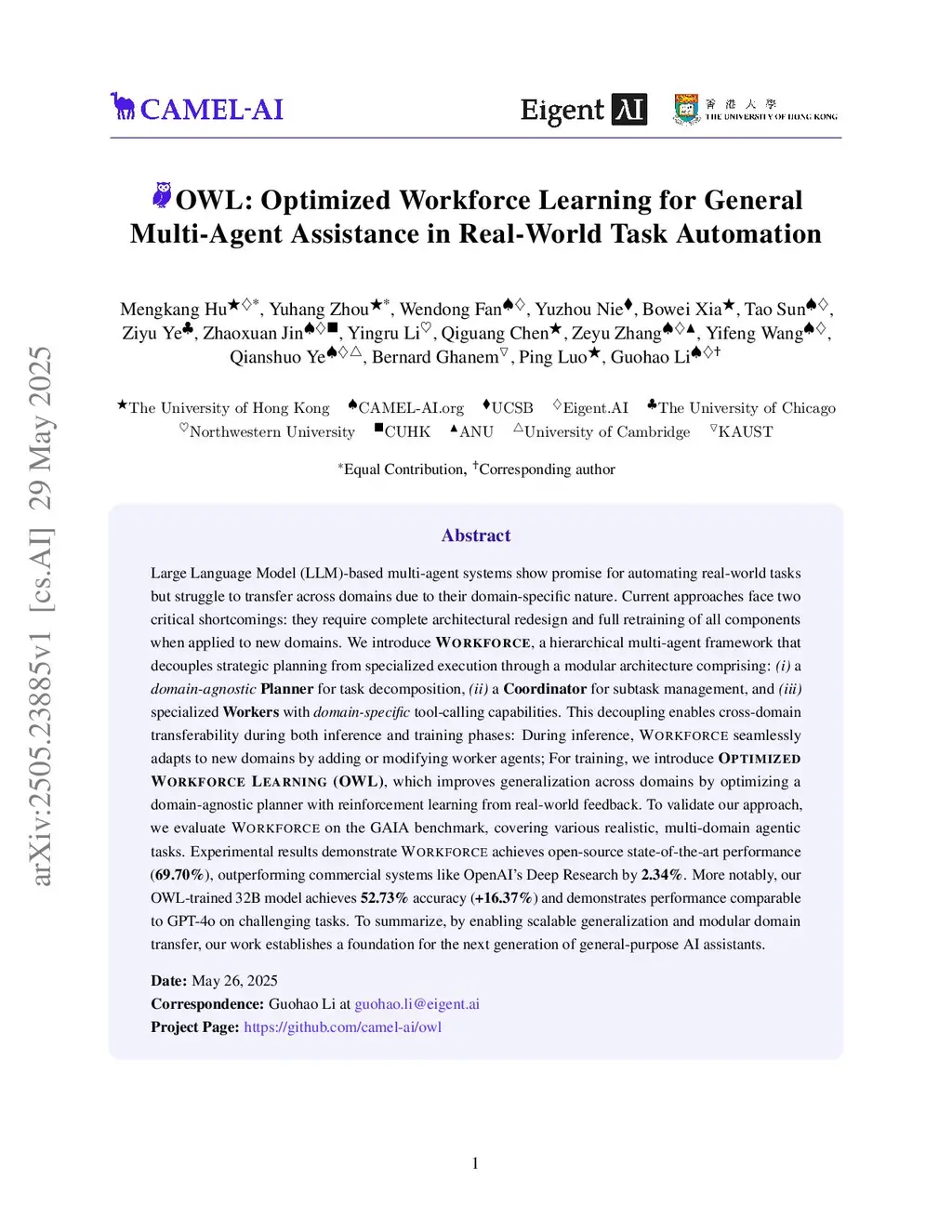 OWL: Optimized Workforce Learning for General Multi-Agent Assistance in Real-World Task Automation
