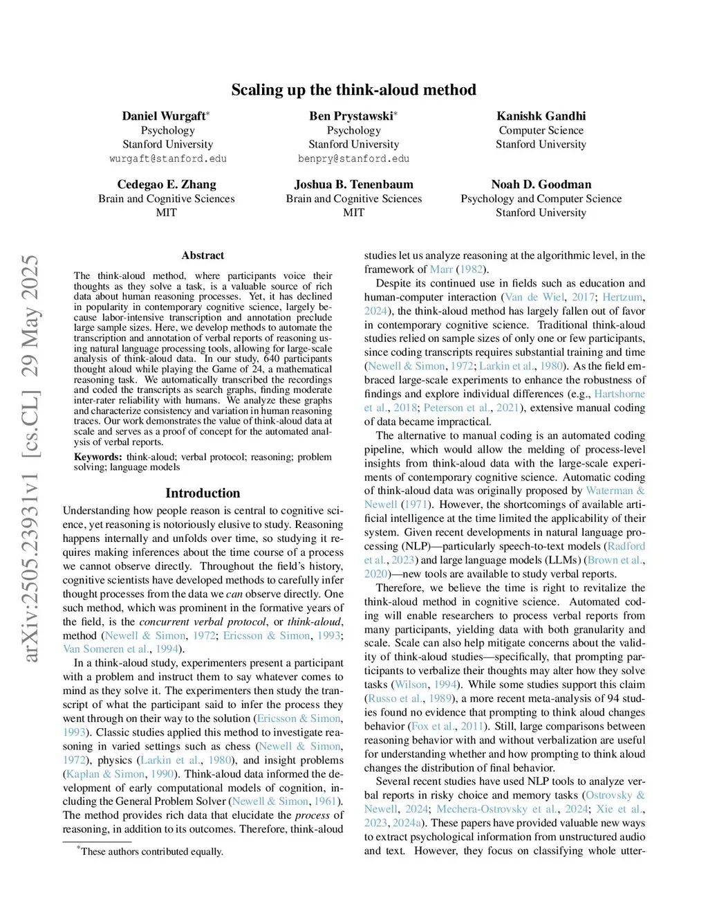 The think-aloud method, where participants voice their thoughts as they solve a task, is a valuable source of rich data about human reasoning processes. Yet, it has declined in popularity in contemporary cognitive science, largely because labor-intensive transcription and annotation preclude large sample sizes. Here, we develop methods to automate the transcription and annotation of verbal reports of reasoning using natural language processing tools, allowing for large-scale analysis of think-aloud data. In our study, 640 participants thought aloud while playing the Game of 24, a mathematical reasoning task. We automatically transcribed the recordings and coded the transcripts as search graphs, finding moderate inter-rater reliability with humans. We analyze these graphs and characterize consistency and variation in human reasoning traces. Our work demonstrates the value of think-aloud data at scale and serves as a proof of concept for the automated analysis of verbal reports.