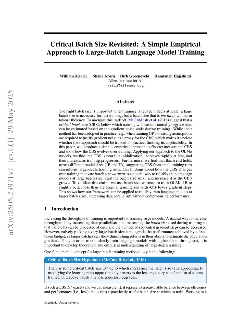 Critical Batch Size Revisited: A Simple Empirical Approach to Large-Batch Language Model Training