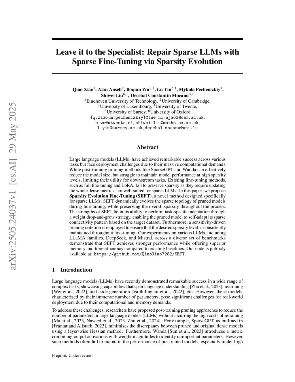 Leave it to the Specialist: Repair Sparse LLMs with Sparse Fine-Tuning via Sparsity Evolution