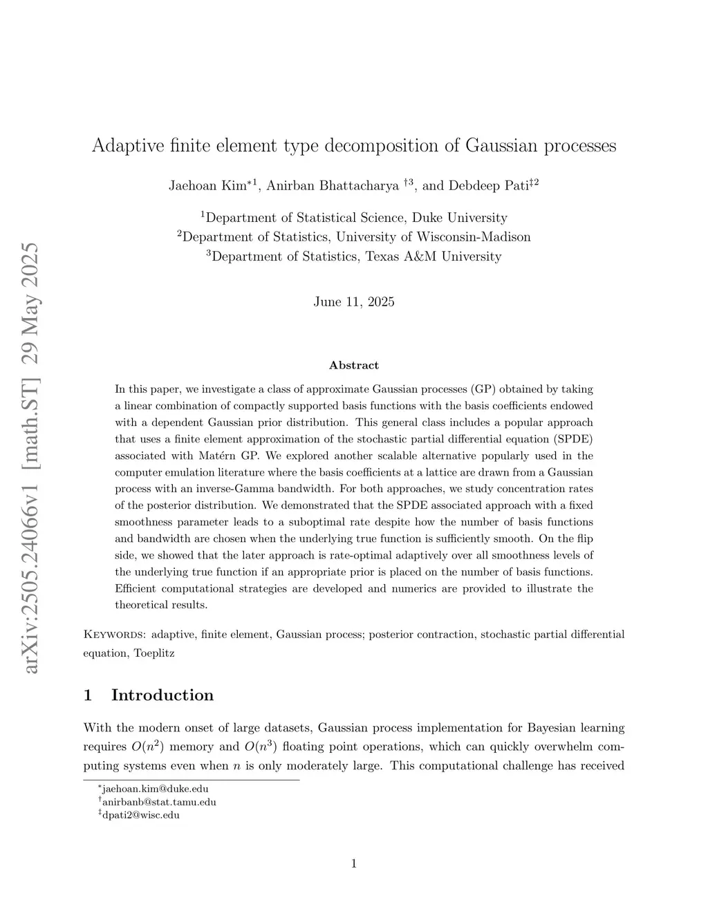 In this paper, we investigate a class of approximate Gaussian processes (GP) obtained by taking a linear combination of compactly supported basis functions with the basis coefficients endowed with a dependent Gaussian prior distribution. This general class includes a popular approach that uses a finite element approximation of the stochastic partial differential equation (SPDE) associated with Matérn GP. We explored another scalable alternative popularly used in the computer emulation literature where the basis coefficients at a lattice are drawn from a Gaussian process with an inverse-Gamma bandwidth. For both approaches, we study concentration rates of the posterior distribution. We demonstrated that the SPDE associated approach with a fixed smoothness parameter leads to a suboptimal rate despite how the number of basis functions and bandwidth are chosen when the underlying true function is sufficiently smooth. On the flip side, we showed that the later approach is rate-optimal adaptively over all smoothness levels of the underlying true function if an appropriate prior is placed on the number of basis functions. Efficient computational strategies are developed and numerics are provided to illustrate the theoretical results.