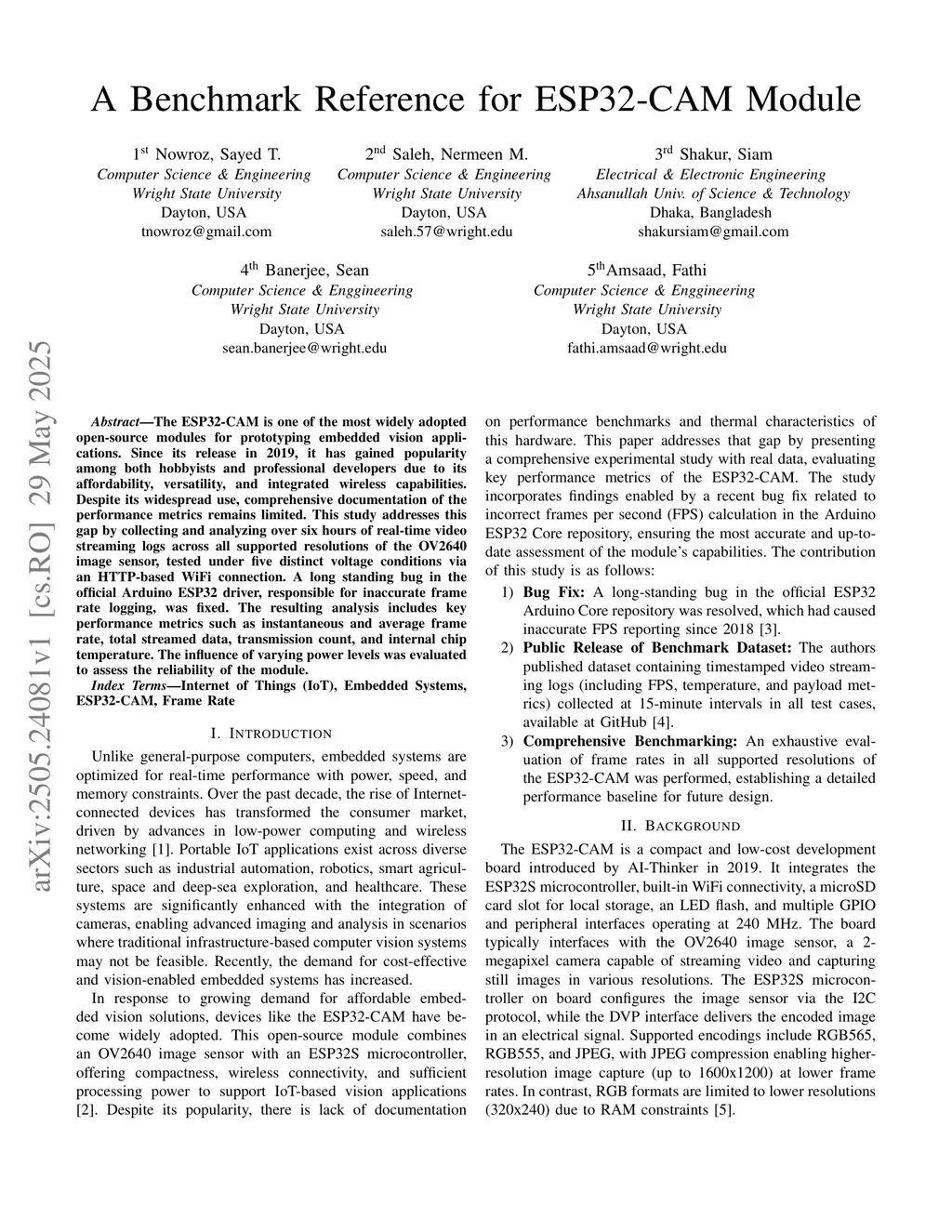The ESP32-CAM is one of the most widely adopted open-source modules for prototyping embedded vision applications. Since its release in 2019, it has gained popularity among both hobbyists and professional developers due to its affordability, versatility, and integrated wireless capabilities. Despite its widespread use, comprehensive documentation of the performance metrics remains limited. This study addresses this gap by collecting and analyzing over six hours of real-time video streaming logs across all supported resolutions of the OV2640 image sensor, tested under five distinct voltage conditions via an HTTP-based WiFi connection. A long standing bug in the official Arduino ESP32 driver, responsible for inaccurate frame rate logging, was fixed. The resulting analysis includes key performance metrics such as instantaneous and average frame rate, total streamed data, transmission count, and internal chip temperature. The influence of varying power levels was evaluated to assess the reliability of the module.