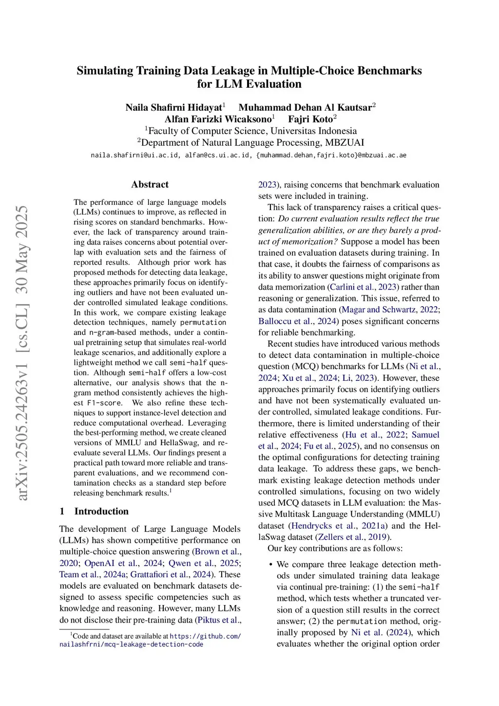 Simulating Training Data Leakage in Multiple-Choice Benchmarks for LLM Evaluation