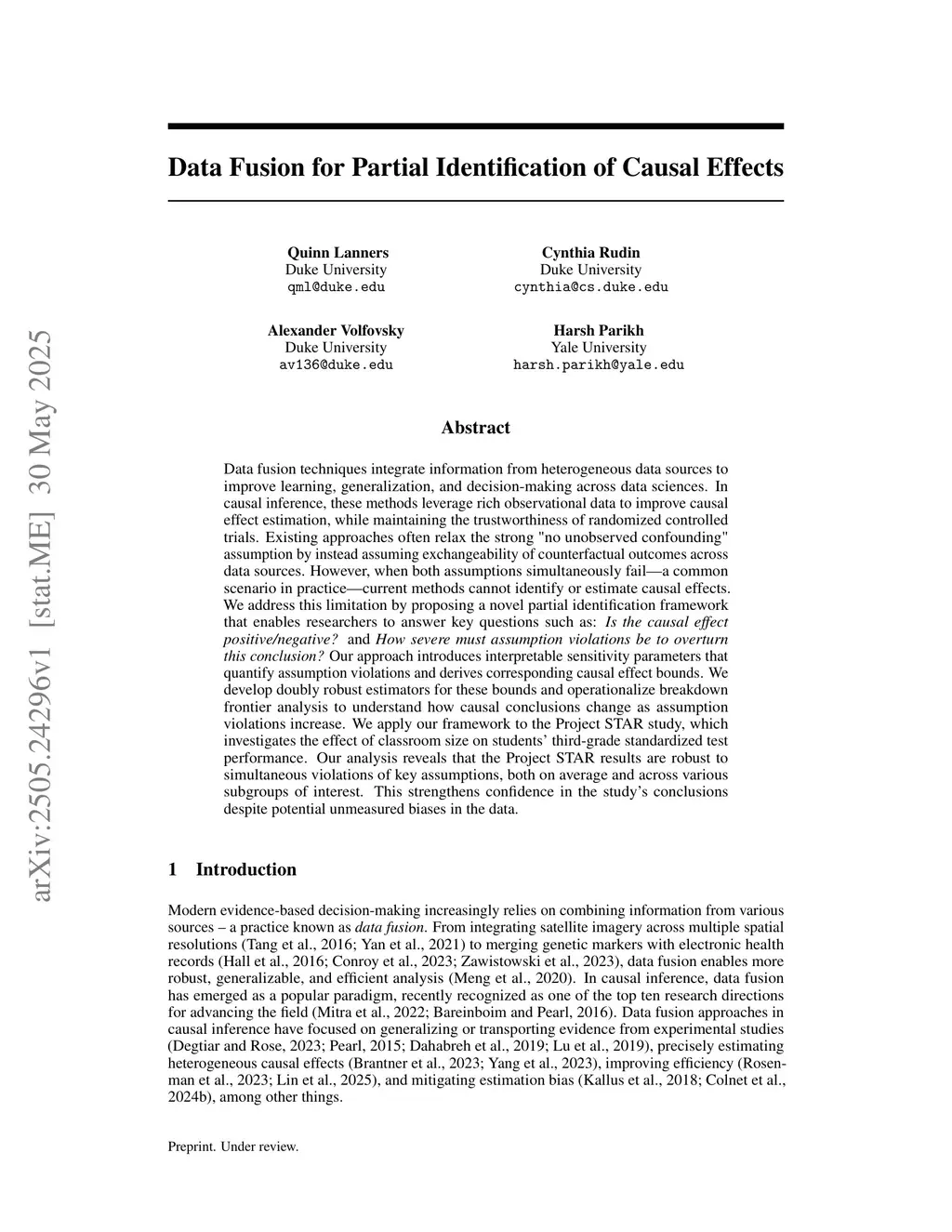Data fusion techniques integrate information from heterogeneous data sources to improve learning, generalization, and decision making across data sciences. In causal inference, these methods leverage rich observational data to improve causal effect estimation, while maintaining the trustworthiness of randomized controlled trials. Existing approaches often relax the strong no unobserved confounding assumption by instead assuming exchangeability of counterfactual outcomes across data sources. However, when both assumptions simultaneously fail - a common scenario in practice - current methods cannot identify or estimate causal effects. We address this limitation by proposing a novel partial identification framework that enables researchers to answer key questions such as: Is the causal effect positive or negative? and How severe must assumption violations be to overturn this conclusion? Our approach introduces interpretable sensitivity parameters that quantify assumption violations and derives corresponding causal effect bounds. We develop doubly robust estimators for these bounds and operationalize breakdown frontier analysis to understand how causal conclusions change as assumption violations increase. We apply our framework to the Project STAR study, which investigates the effect of classroom size on students' third-grade standardized test performance. Our analysis reveals that the Project STAR results are robust to simultaneous violations of key assumptions, both on average and across various subgroups of interest. This strengthens confidence in the study's conclusions despite potential unmeasured biases in the data.