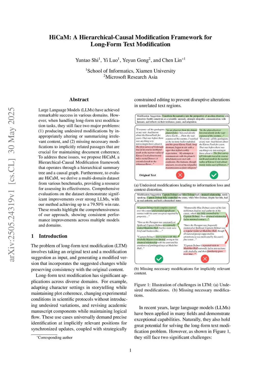 HiCaM: A Hierarchical-Causal Modification Framework for Long-Form Text Modification