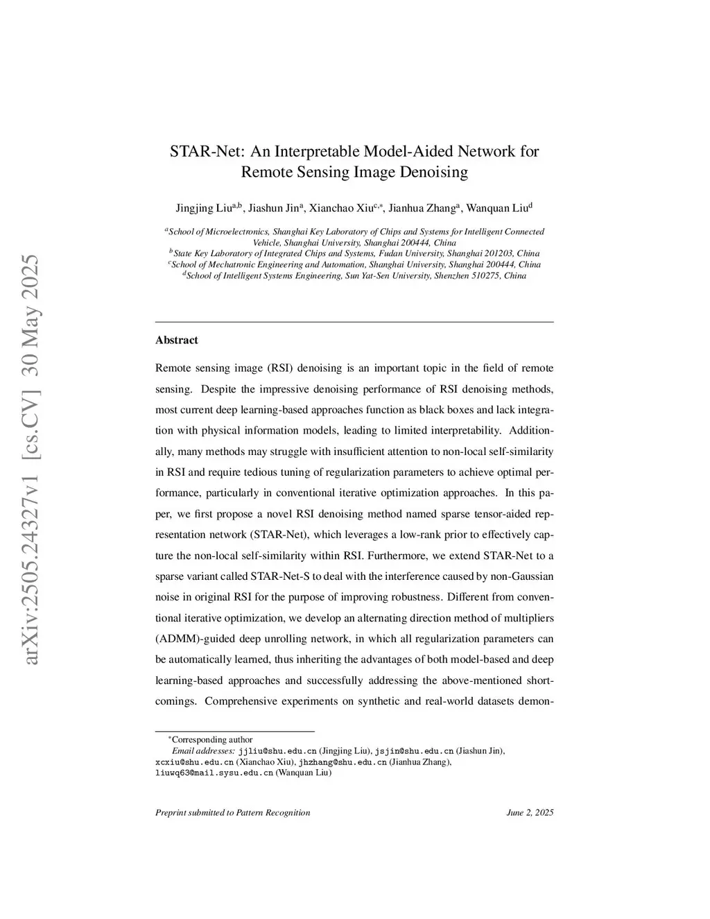STAR-Net: An Interpretable Model-Aided Network for Remote Sensing Image Denoising