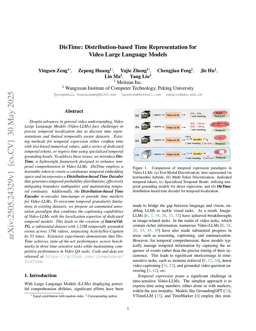 Despite advances in general video understanding, Video Large Language Models (Video-LLMs) face challenges in precise temporal localization due to discrete time representations and limited temporally aware datasets. Existing methods for temporal expression either conflate time with text-based numerical values, add a series of dedicated temporal tokens, or regress time using specialized temporal grounding heads. To address these issues, we introduce DisTime, a lightweight framework designed to enhance temporal comprehension in Video-LLMs. DisTime employs a learnable token to create a continuous temporal embedding space and incorporates a Distribution-based Time Decoder that generates temporal probability distributions, effectively mitigating boundary ambiguities and maintaining temporal continuity. Additionally, the Distribution-based Time Encoder re-encodes timestamps to provide time markers for Video-LLMs. To overcome temporal granularity limitations in existing datasets, we propose an automated annotation paradigm that combines the captioning capabilities of Video-LLMs with the localization expertise of dedicated temporal models. This leads to the creation of InternVid-TG, a substantial dataset with 1.25M temporally grounded events across 179k videos, surpassing ActivityNet-Caption by 55 times. Extensive experiments demonstrate that DisTime achieves state-of-the-art performance across benchmarks in three time-sensitive tasks while maintaining competitive performance in Video QA tasks. Code and data are released atthis https URL.