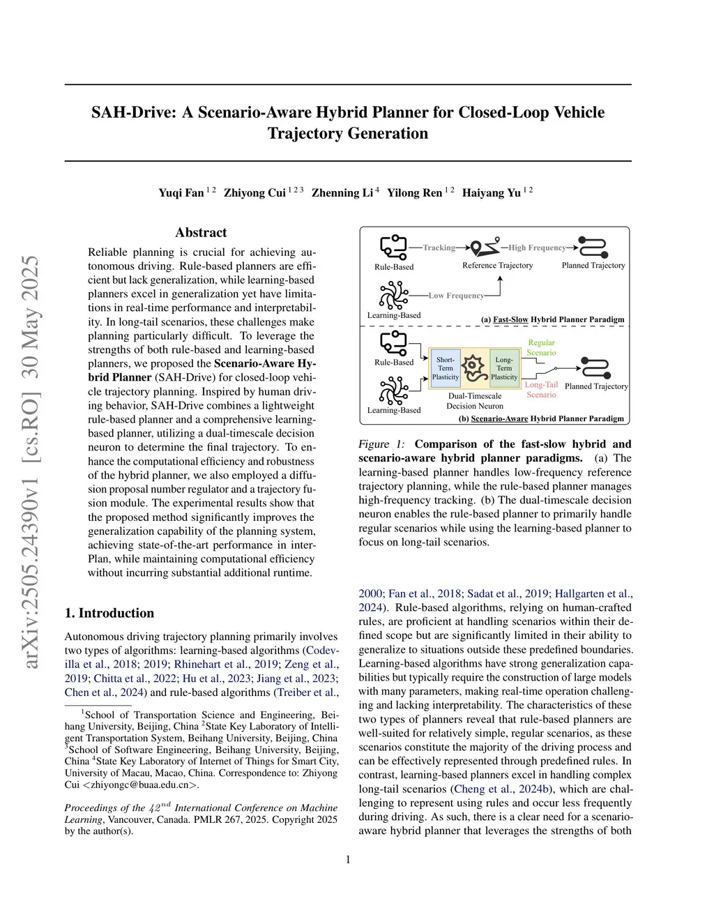 SAH-Drive: A Scenario-Aware Hybrid Planner for Closed-Loop Vehicle Trajectory Generation