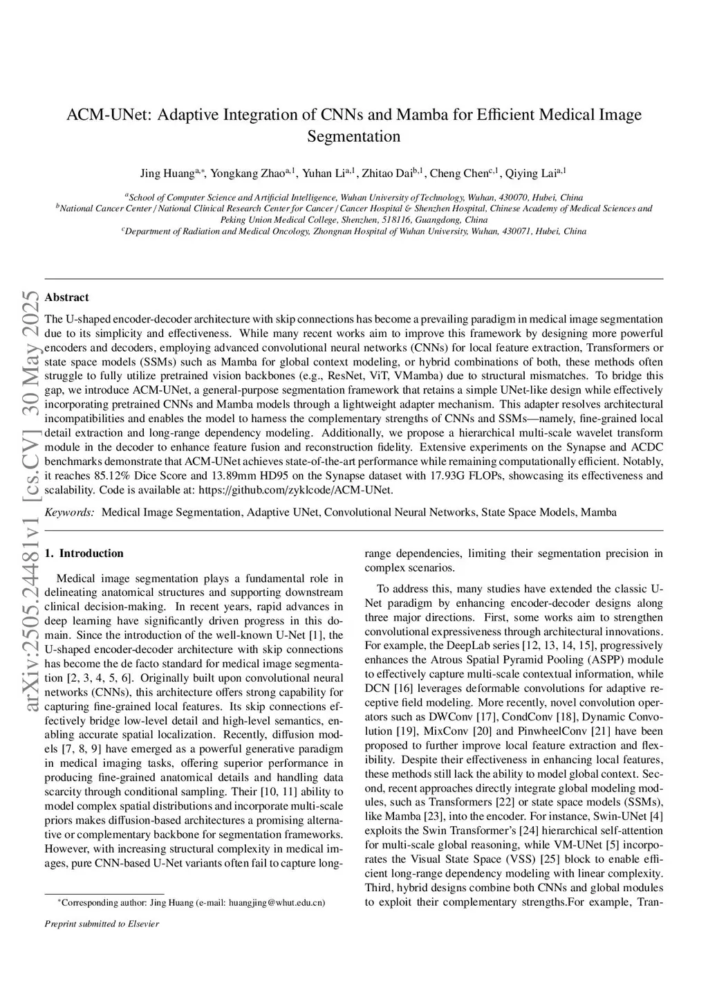 ACM-UNet: Adaptive Integration of CNNs and Mamba for Efficient Medical Image Segmentation
