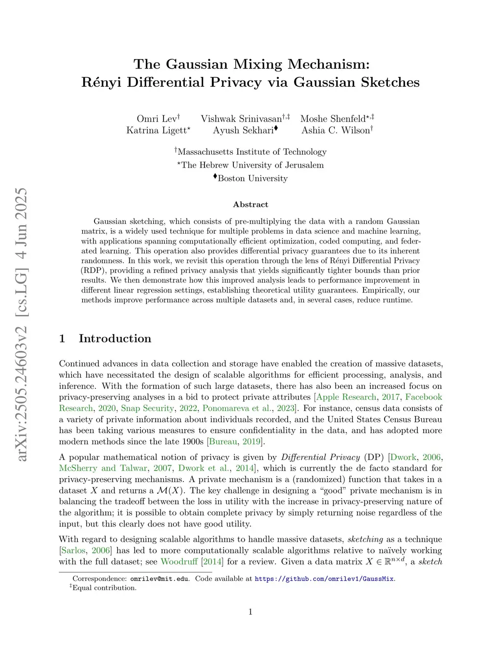 The Gaussian Mixing Mechanism: Renyi Differential Privacy via Gaussian Sketches