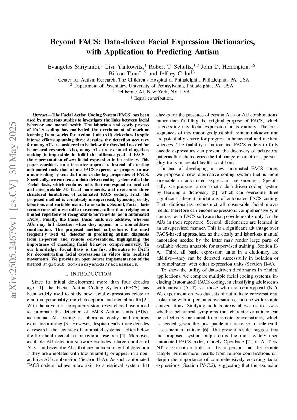 The Facial Action Coding System (FACS) has been used by numerous studies to investigate the links between facial behavior and mental health. The laborious and costly process of FACS coding has motivated the development of machine learning frameworks for Action Unit (AU) detection. Despite intense efforts spanning three decades, the detection accuracy for many AUs is considered to be below the threshold needed for behavioral research. Also, many AUs are excluded altogether, making it impossible to fulfill the ultimate goal of FACS-the representation of any facial expression in its entirety. This paper considers an alternative approach. Instead of creating automated tools that mimic FACS experts, we propose to use a new coding system that mimics the key properties of FACS. Specifically, we construct a data-driven coding system called the Facial Basis, which contains units that correspond to localized and interpretable 3D facial movements, and overcomes three structural limitations of automated FACS coding. First, the proposed method is completely unsupervised, bypassing costly, laborious and variable manual annotation. Second, Facial Basis reconstructs all observable movement, rather than relying on a limited repertoire of recognizable movements (as in automated FACS). Finally, the Facial Basis units are additive, whereas AUs may fail detection when they appear in a non-additive combination. The proposed method outperforms the most frequently used AU detector in predicting autism diagnosis from in-person and remote conversations, highlighting the importance of encoding facial behavior comprehensively. To our knowledge, Facial Basis is the first alternative to FACS for deconstructing facial expressions in videos into localized movements. We provide an open source implementation of the method atthis http URL.