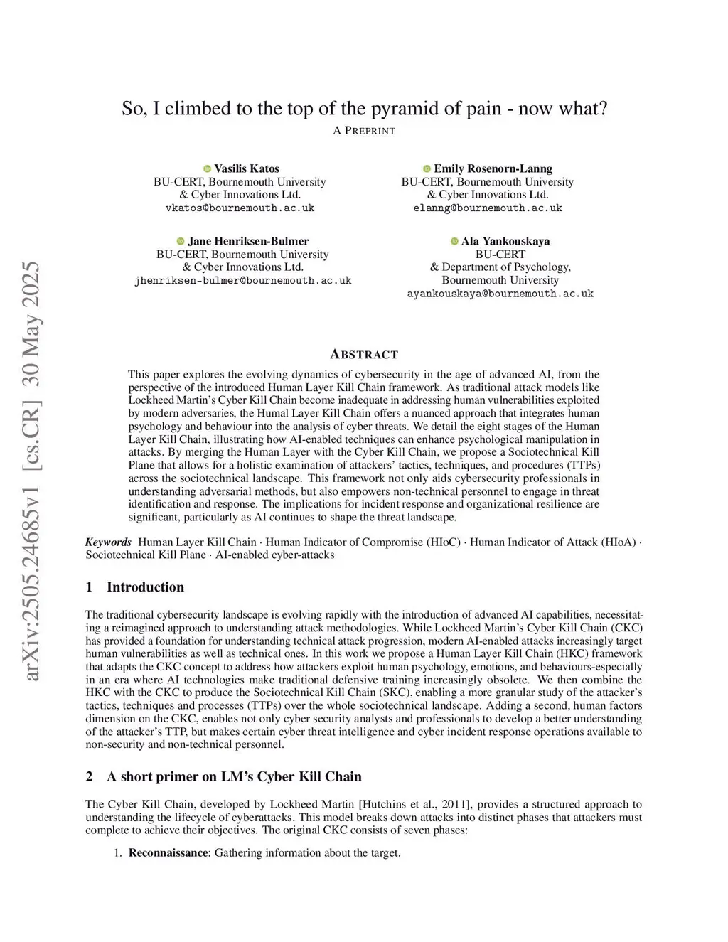 This paper explores the evolving dynamics of cybersecurity in the age of advanced AI, from the perspective of the introduced Human Layer Kill Chain framework. As traditional attack models like Lockheed Martin's Cyber Kill Chain become inadequate in addressing human vulnerabilities exploited by modern adversaries, the Humal Layer Kill Chain offers a nuanced approach that integrates human psychology and behaviour into the analysis of cyber threats. We detail the eight stages of the Human Layer Kill Chain, illustrating how AI-enabled techniques can enhance psychological manipulation in attacks. By merging the Human Layer with the Cyber Kill Chain, we propose a Sociotechnical Kill Plane that allows for a holistic examination of attackers' tactics, techniques, and procedures (TTPs) across the sociotechnical landscape. This framework not only aids cybersecurity professionals in understanding adversarial methods, but also empowers non-technical personnel to engage in threat identification and response. The implications for incident response and organizational resilience are significant, particularly as AI continues to shape the threat landscape.