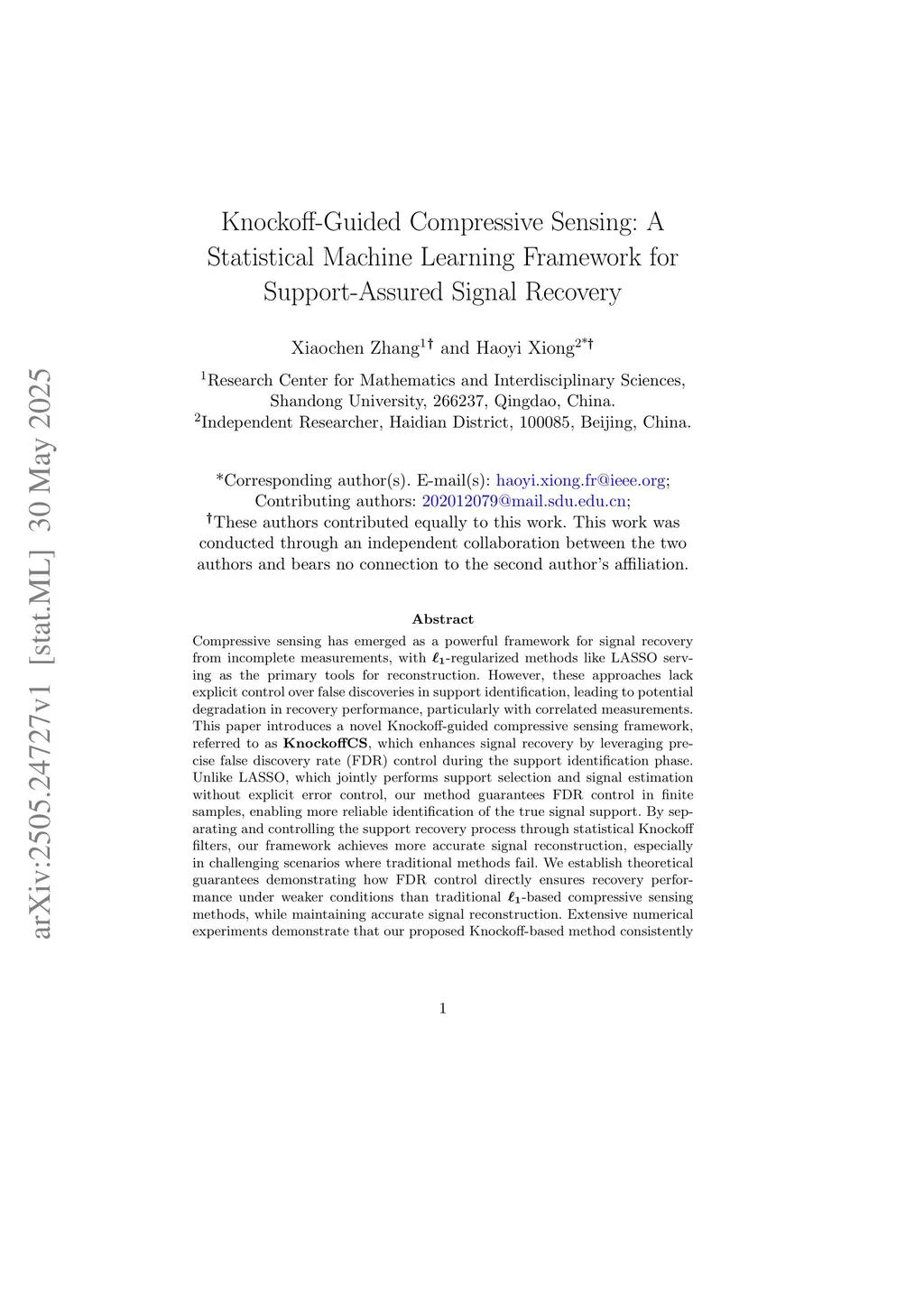 This paper introduces a novel Knockoff-guided compressive sensing framework, referred to as \TheName{}, which enhances signal recovery by leveraging precise false discovery rate (FDR) control during the support identification phase. Unlike LASSO, which jointly performs support selection and signal estimation without explicit error control, our method guarantees FDR control in finite samples, enabling more reliable identification of the true signal support. By separating and controlling the support recovery process through statistical Knockoff filters, our framework achieves more accurate signal reconstruction, especially in challenging scenarios where traditional methods fail. We establish theoretical guarantees demonstrating how FDR control directly ensures recovery performance under weaker conditions than traditional -based compressive sensing methods, while maintaining accurate signal reconstruction. Extensive numerical experiments demonstrate that our proposed Knockoff-based method consistently outperforms LASSO-based and other state-of-the-art compressive sensing techniques. In simulation studies, our method improves F1-score by up to 3.9x over baseline methods, attributed to principled false discovery rate (FDR) control and enhanced support recovery. The method also consistently yields lower reconstruction and relative errors. We further validate the framework on real-world datasets, where it achieves top downstream predictive performance across both regression and classification tasks, often narrowing or even surpassing the performance gap relative to uncompressed signals. These results establish \TheName{} as a robust and practical alternative to existing approaches, offering both theoretical guarantees and strong empirical performance through statistically grounded support selection.