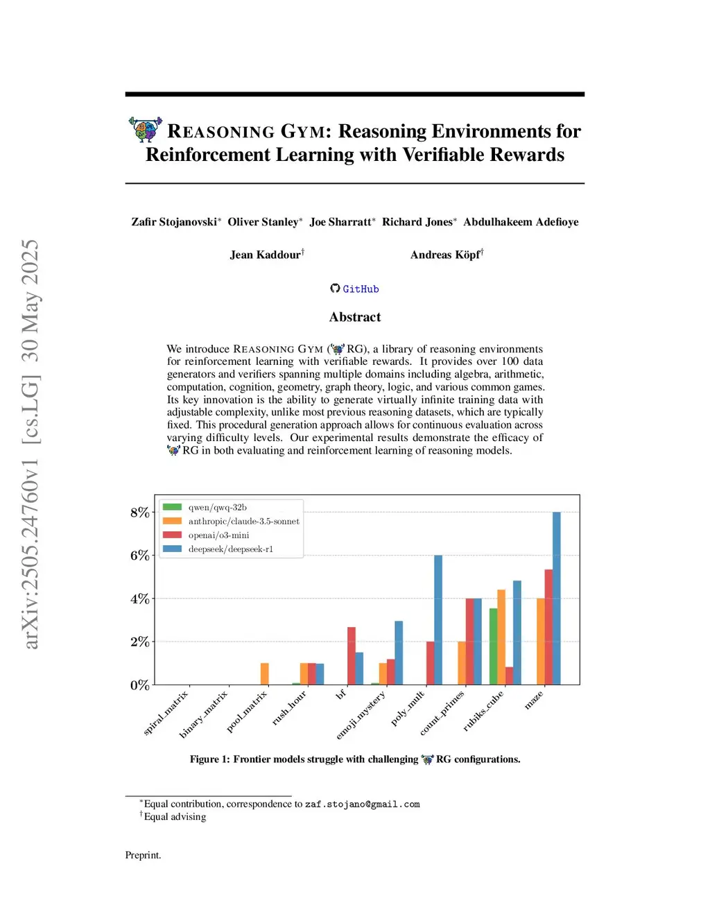 REASONING GYM: Reasoning Environments for Reinforcement Learning with Verifiable Rewards
