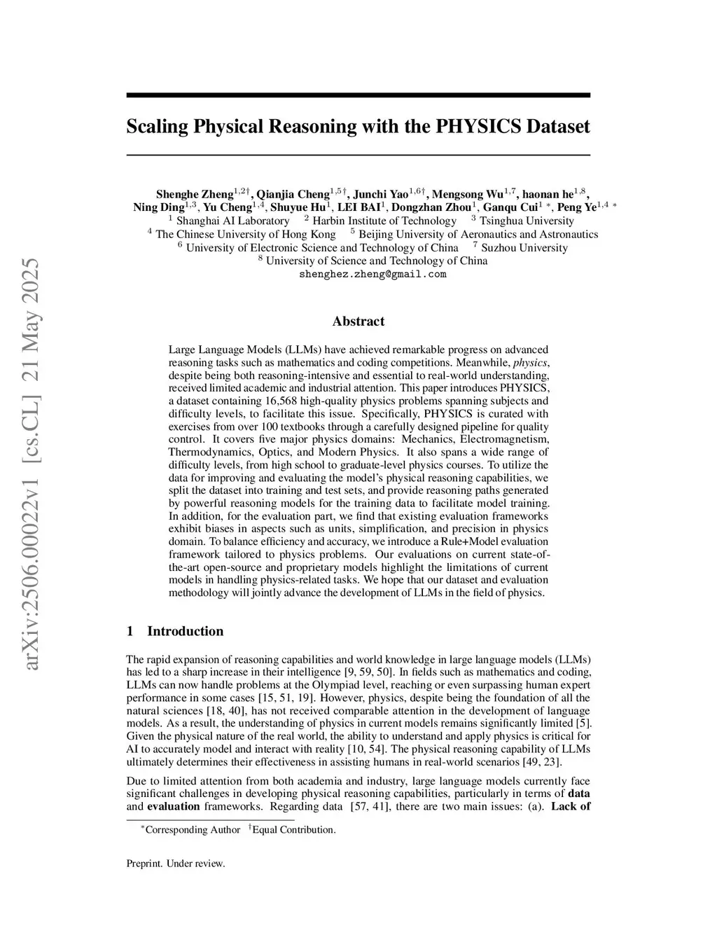Scaling Physical Reasoning with the PHYSICS Dataset