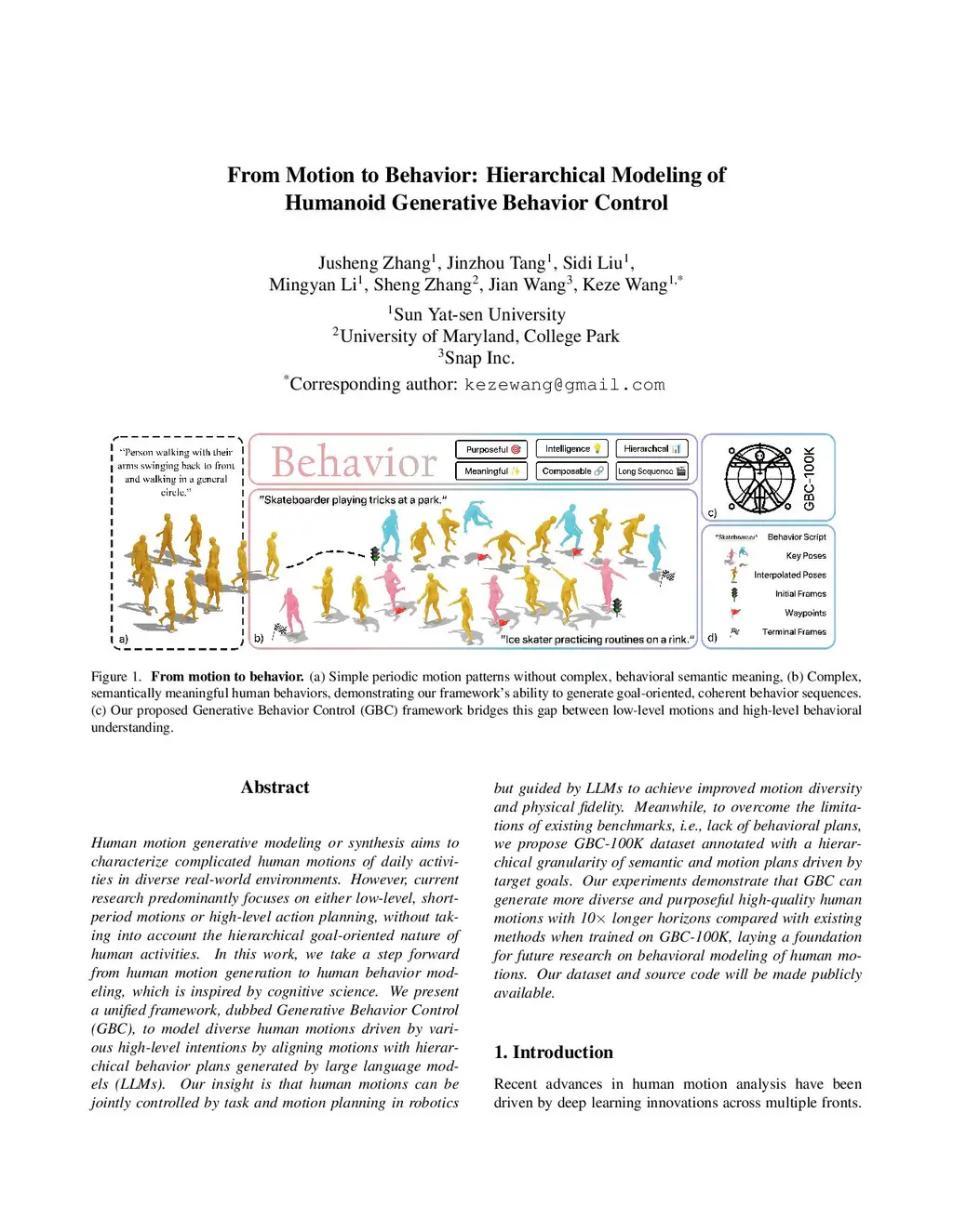 From Motion to Behavior: Hierarchical Modeling of Humanoid Generative Behavior Control