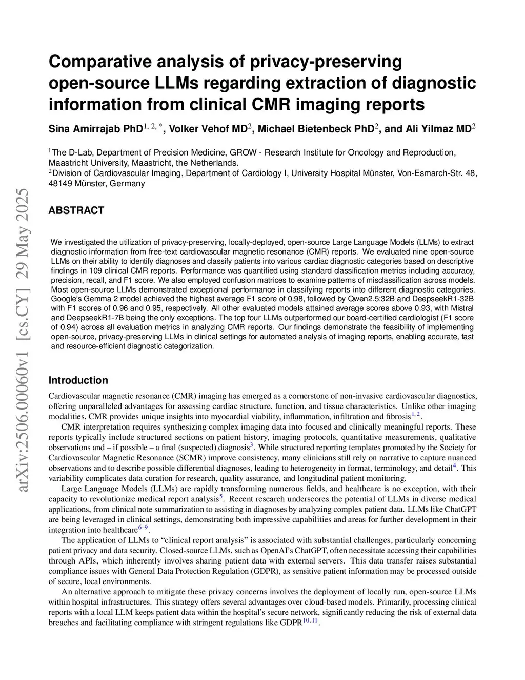 Comparative analysis of privacy-preserving open-source LLMs regarding extraction of diagnostic information from clinical CMR imaging reports