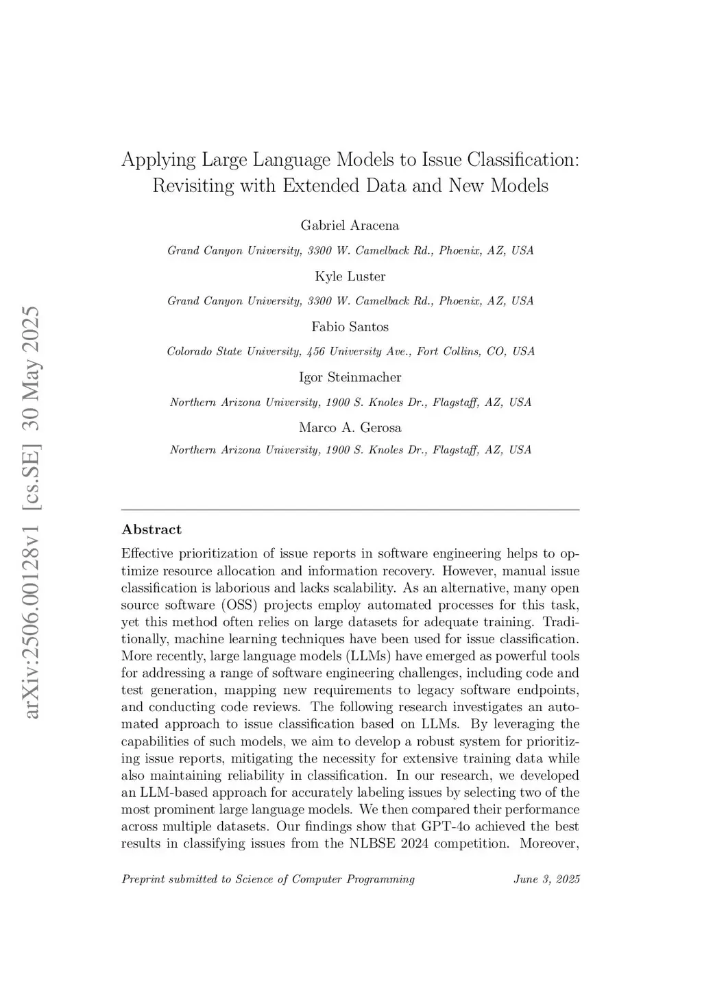 Applying Large Language Models to Issue Classification: Revisiting with Extended Data and New Models