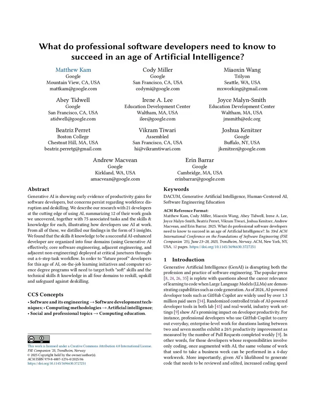 What do professional software developers need to know to succeed in an age of Artificial Intelligence?