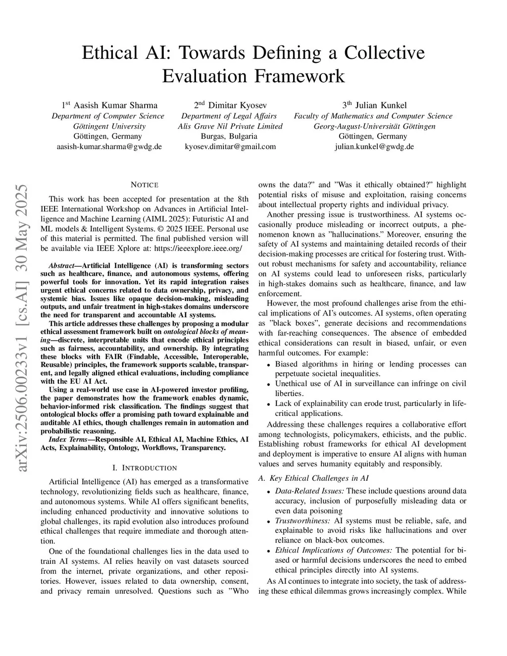 Ethical AI: Towards Defining a Collective Evaluation Framework