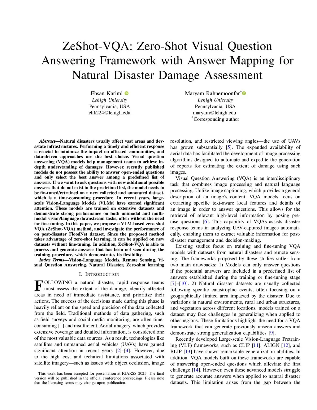 ZeShot-VQA: Zero-Shot Visual Question Answering Framework with Answer Mapping for Natural Disaster Damage Assessment